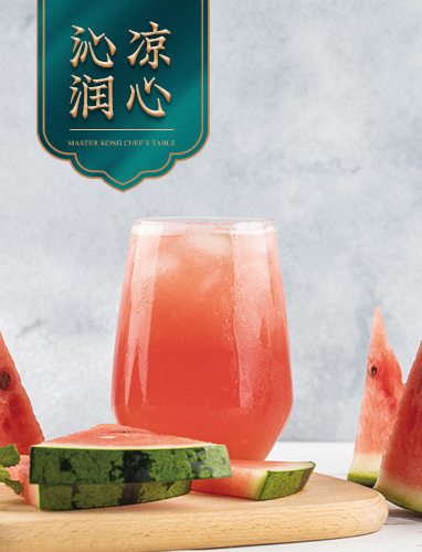 以新鮮西瓜切片鮮榨,口感甘甜,沁涼潤心。